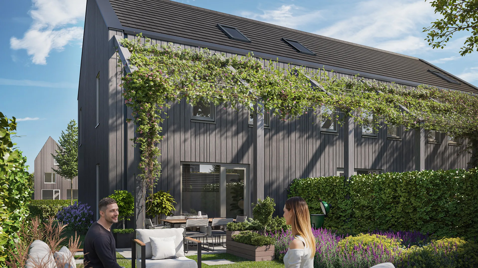 Woningtype Maarschalk in Wolderburght is een fijne gezinswoning met een robuuste uitstraling. De moderne schuurwoning architectuur, uitgevoerd in zwart hout, geeft deze woning een krachtig en stijlvol karakter dat direct opvalt in het straatbeeld. De tuingerichte woonkamer sluit mooi aan op de zonnige achtertuin op het zuiden, waar je van ’s ochtends tot ’s avonds van de zon geniet. Bij enkele woningen (bouwnummer 18, 19, 25 t/m 27) zorgt een robuuste houten pergola voor extra sfeer en een beschutte plek voor heerlijke zomeravonden.